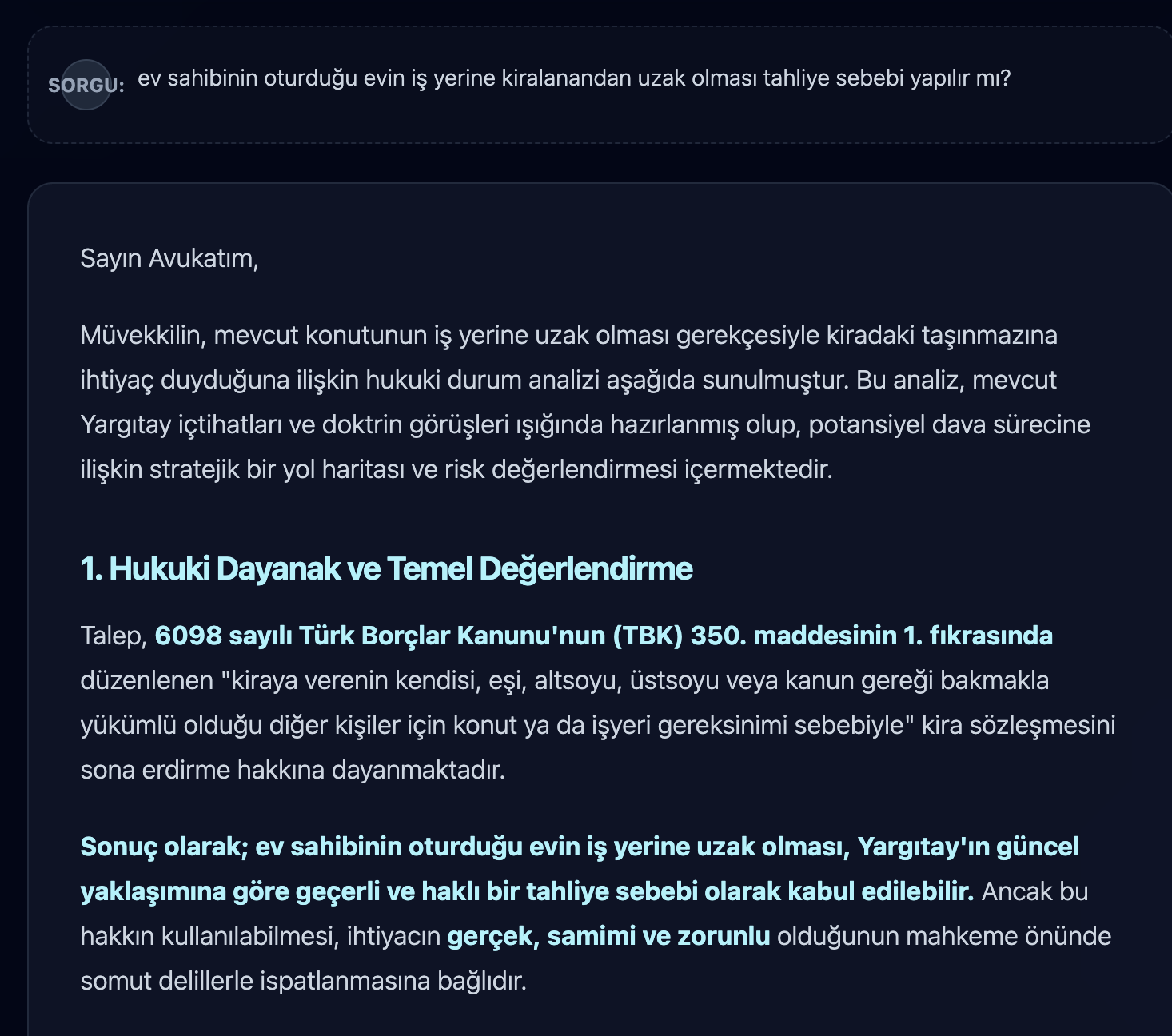 Milyonlarca Türk Hukuk Tezi ve Yargıtay Kararı ile Eğitilmiş Yapay Zeka Asistanı.