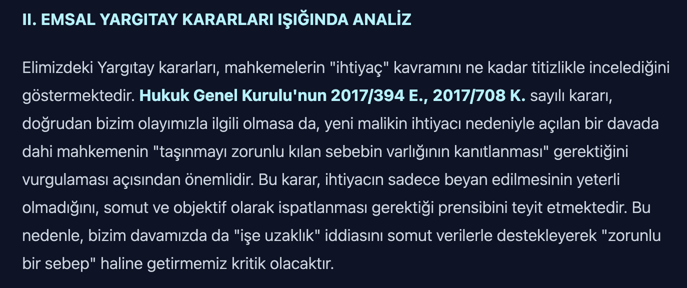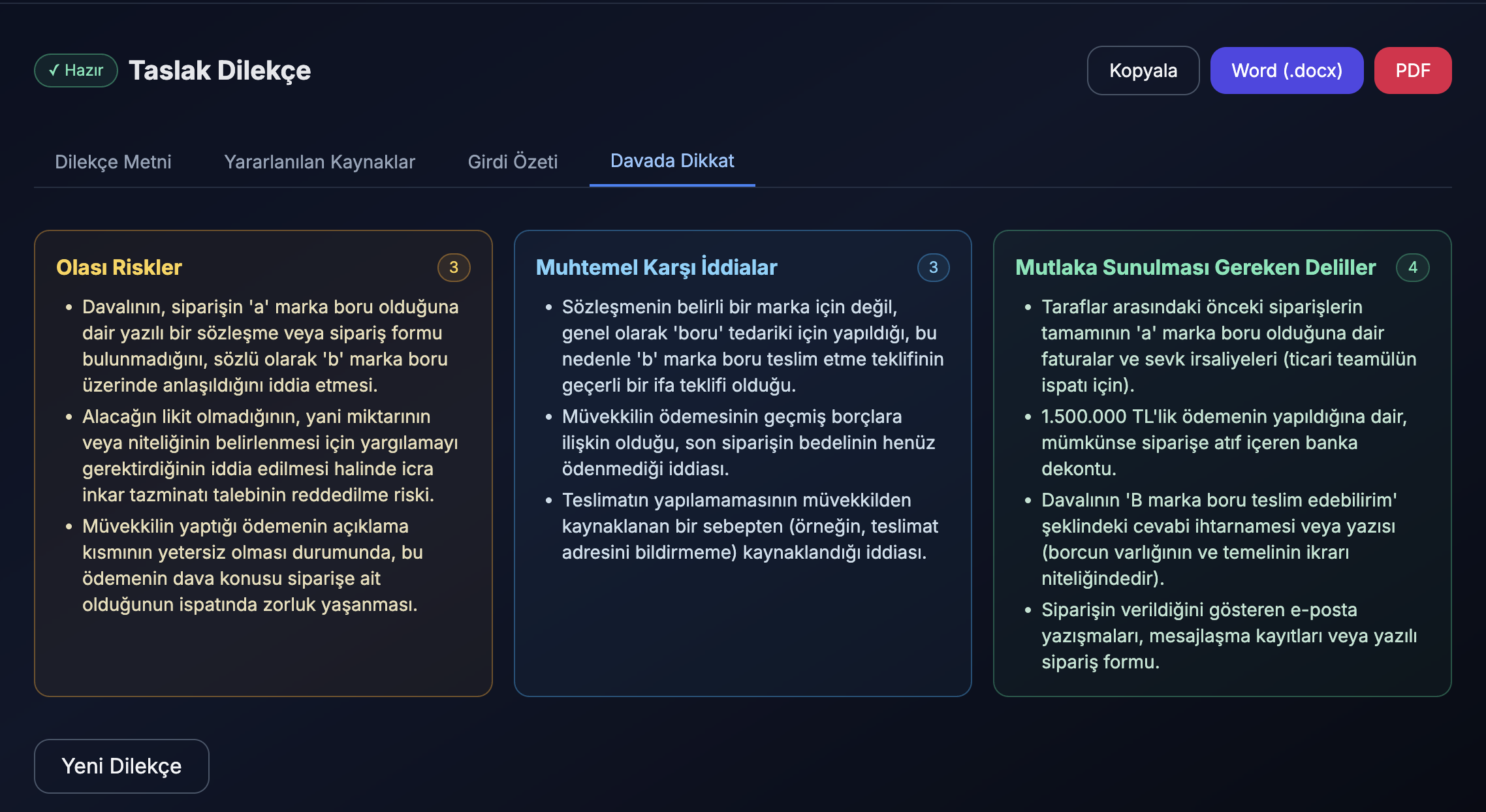 Dosya risk analizi, strateji ve emsal kararlar. Her analiz sadece 1 Token.